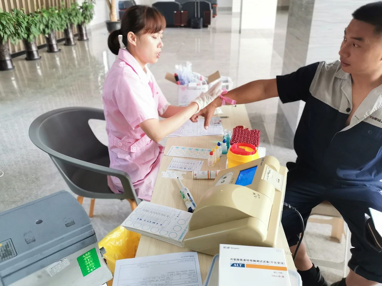 当日一早,在办公楼大厅已是人头攒动,二十多名bevictor伟德官网员工们排起了长队,在医护人员的解说下逐个填写献血登记表,而后是抽血、验血步骤,验血合格后进行最终的献血。